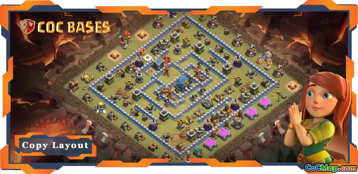 No geral, a base de guerra TH12, com sua prefeitura central e defesas estrategicamente posicionadas, representa um projeto bem estruturado que visa maximizar a capacidade de sobrevivência contra uma variedade de estratégias de ataque. Com cada elemento servindo a um propósito específico dentro do layout defensivo, representa um desafio significativo para os oponentes que tentam alcançar uma vitória de três estrelas.