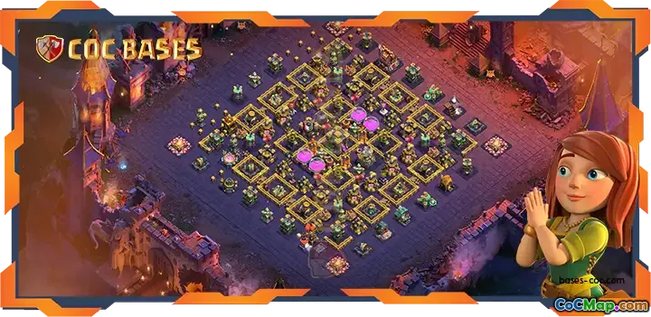 This top-tier TH14 war base layout is specifically designed to prevent opponents from achieving 2-star victories, making it ideal for clan wars and trophy protection. Its strategic placement of defenses and traps ensures maximum coverage and damage output, discouraging aggressive attacks.
