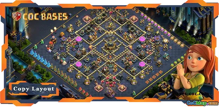 Its unique layout balances compactness with strategic spacing, ensuring that defenses cover all angles and key resources are well-protected. The base includes a carefully positioned Clan Castle, heroes, and key defenses to maximize coverage and resistance against common attack strategies. Ideal for players seeking consistent resource gains and maximum defense against high-level raids, this layout is a must-try for TH17 Clans.