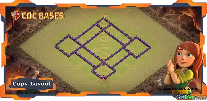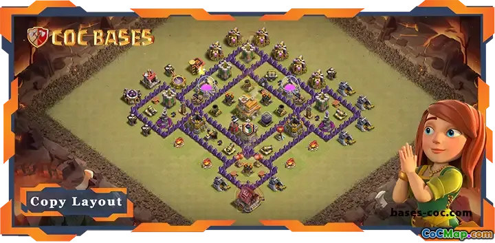 This top-tier TH7 base layout is designed to provide maximum protection against all attack types, including air, ground, and hybrid strategies. Its well-placed defenses, traps, and walls create a formidable barrier that confuses and repels enemy troops, making it ideal for clan wars and farming alike.
