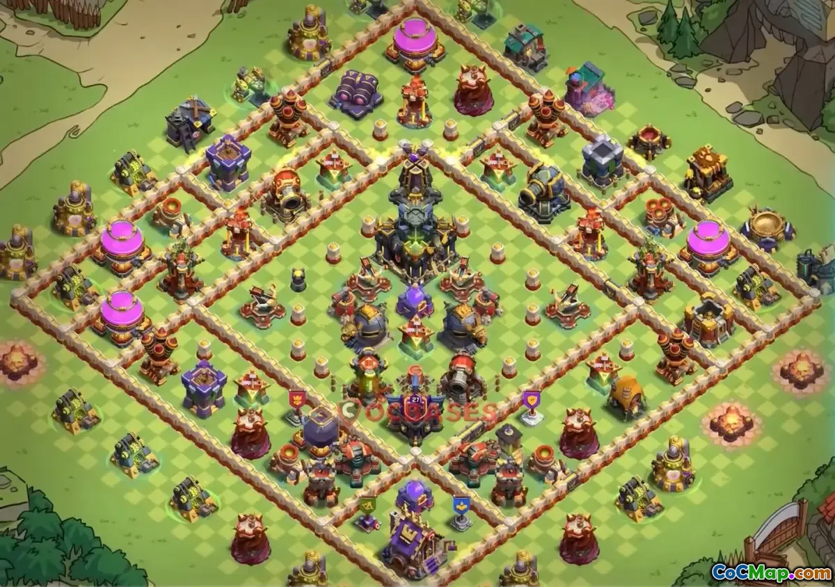 A base agrícola Town Hall 17 em Clash of Clans foi projetada especificamente para jogadores que buscam otimizar sua coleta de recursos enquanto protegem seus ativos. Com a introdução da Câmara Municipal 17, surgiram novas estratégias e layouts que são particularmente eficazes para a agricultura. Este layout de base agrícola foi criado para minimizar a perda de recursos e estruturas defensivas durante ataques de outros jogadores. A colocação adequada dos edifícios é crucial para garantir que os armazéns e as principais defesas estejam bem protegidos.