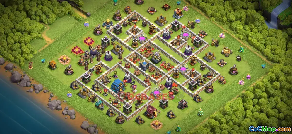 The Town Hall 12 trophy base in Clash of Clans is a strategic design used by players to protect their trophies from attackers. The layout typically incorporates well-thought-out defenses, such as cannons, archer towers, and hidden traps, arranged in a way that makes it difficult for opponents to achieve a high percentage of destruction. This type of base is popular among players who want to maintain or increase their trophy levels while defending their resources and town hall effectively.
