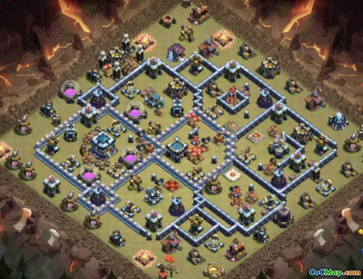 O layout da base para o Clash of Clans na prefeitura 13 inclui vários tipos de projetos adaptados para diferentes fins, como empurramento de troféus, estratégias de guerra e layouts em geral da aldeia doméstica. Cada layout é criado para maximizar a defesa, garantindo que os jogadores possam proteger seus recursos e troféus de maneira eficaz, além de se preparar para guerras de clãs. O nível da prefeitura 13 apresenta novas estruturas e tropas defensivas, que os jogadores podem utilizar para aprimorar seu design básico para o desempenho ideal em batalhas.