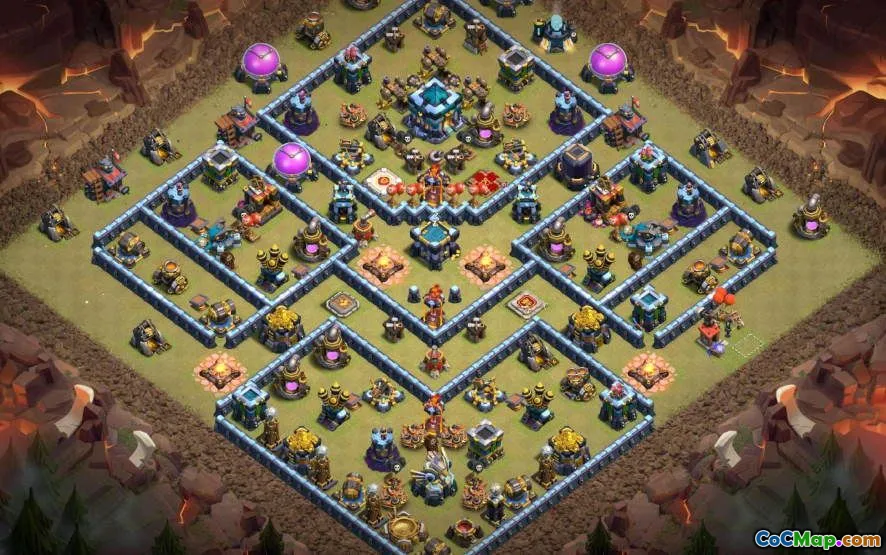 Para a prefeitura 13, os jogadores têm acesso a uma variedade de designs de base que atendem ao seu estilo e objetivos individuais de jogabilidade. Entre esses estão mapas que priorizam a força defensiva, dificultando os oponentes a invadir e roubar recursos, bem como layouts que são estrategicamente estruturados para apoiar uma base de guerra sólida, garantindo que os oponentes enfrentem desafios significativos durante as guerras do clã.