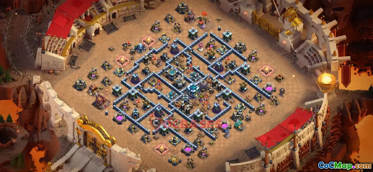 The Town Hall 13 war base in Clash of Clans is designed to strategically defend against enemy attacks during clan wars. It features advanced layouts that incorporate effective placement of walls, defenses, and traps to make it difficult for opponents to breach the core of the base. The layout often emphasizes protecting key structures such as the Eagle Artillery, Clan Castle, and Inferno Towers, which are crucial for strong defense and counterattacks.