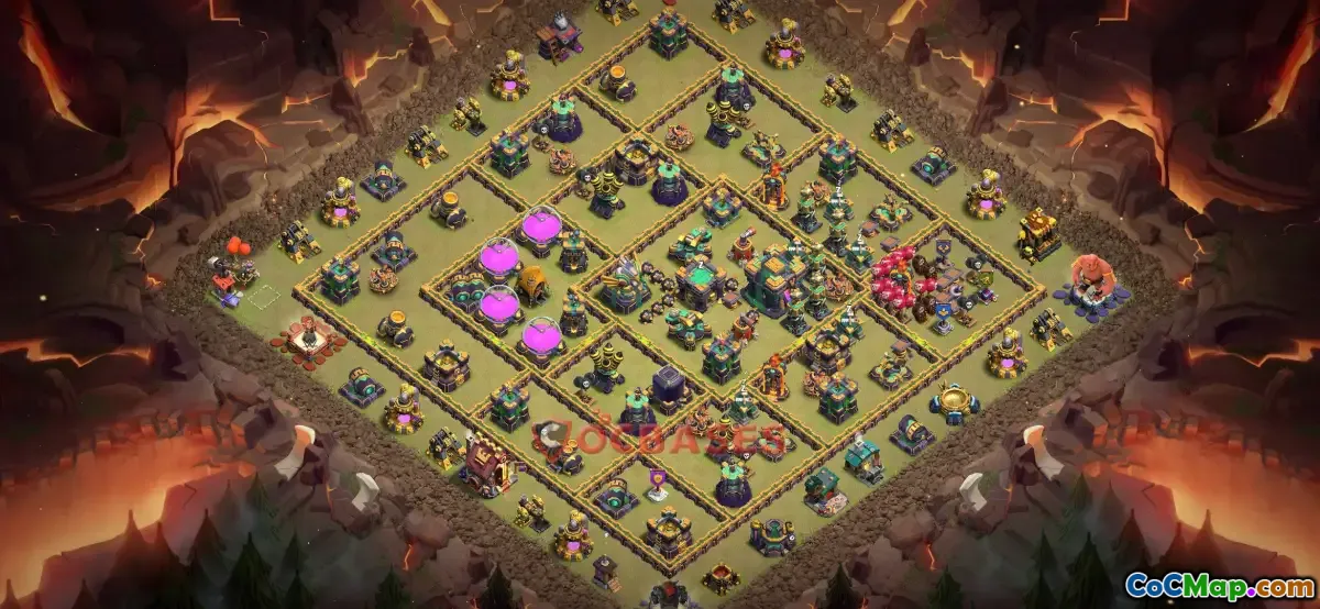 The Town Hall 14 war base in Clash of Clans is a strategic design used by players to defend their resources and prevent enemies from achieving high or three-star victories during clan wars. This level introduces new defenses and building options, making it essential for players to adapt their base layout to maximize protection. A well-designed war base for Town Hall 14 emphasizes layout symmetry, strong defensive positioning, and the effective placement of traps and heroes to thwart attacks.