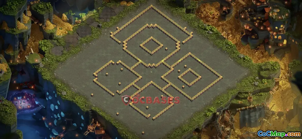 The Town Hall 14 war base in Clash of Clans is designed with strategic layout to defend against enemy attacks during clan wars. It combines various defensive structures, such as Cannons, Archer Towers, and Inferno Towers, arranged to protect critical areas and resources effectively. The base layout often incorporates a balance of walls and compartments that slow down attackers and funnel them into well-defended zones, making it harder for opponents to achieve a high percentage of destruction.