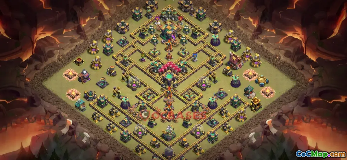 The Town Hall 14 war base layout in Clash of Clans is designed to offer strong defenses and strategic placement to protect your resources and Town Hall from enemy attacks. This base type typically features well-placed walls, multiple layers of protection for key structures, and centralized positioning of the Town Hall to make it harder for opponents to quickly destroy it. Effective base design at this level often includes compartmentalization to slow attacking troops and trap placement to catch enemies off guard.