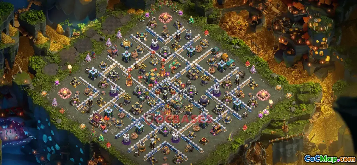 One of the key features of a well-designed Town Hall 14 war base is its ability to distract and trap attacking troops through the placement of traps, Clan Castle, and walls. Properly organizing these elements can help divert enemy units away from critical defenses, giving your defensive structures more time to deal damage. Additionally, placing key defensive buildings in central locations ensures they are protected and can cover a larger radius of the base.