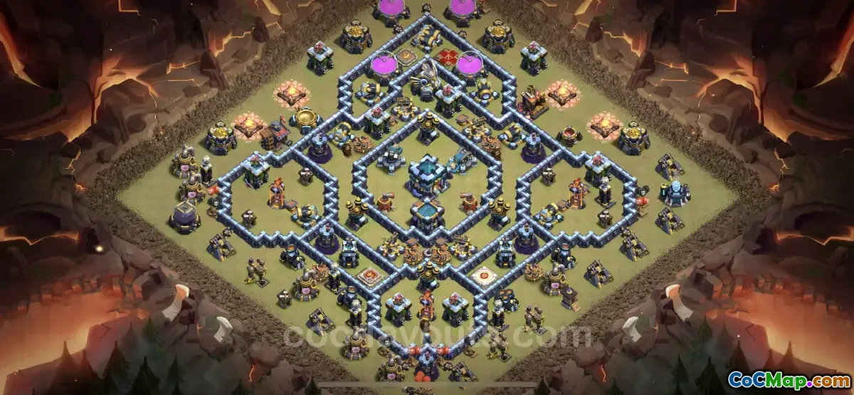 Discover the best anti 2-star TH13 war base with links, designed to counter Electro Dragons and air attacks in Clash of Clans. Defend your Town Hall 13!