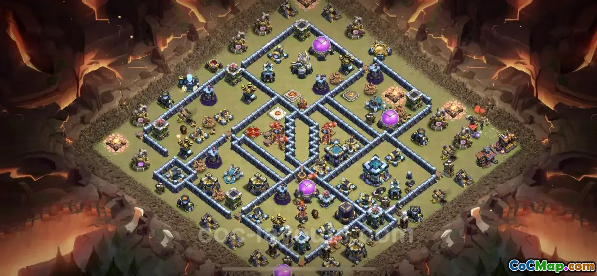 The Best Anti 2 Stars War Base for Town Hall level 13 is designed specifically to thwart enemy attacks and minimize the chances of opponents securing more than two stars during Clan War Leagues (CWL). This base layout focuses on strategic placements of defensive structures that can effectively counter various attacking strategies commonly used in Clash of Clans. The goal is to create a formidable defense that leaves attackers struggling to gain momentum and achieve their objectives.