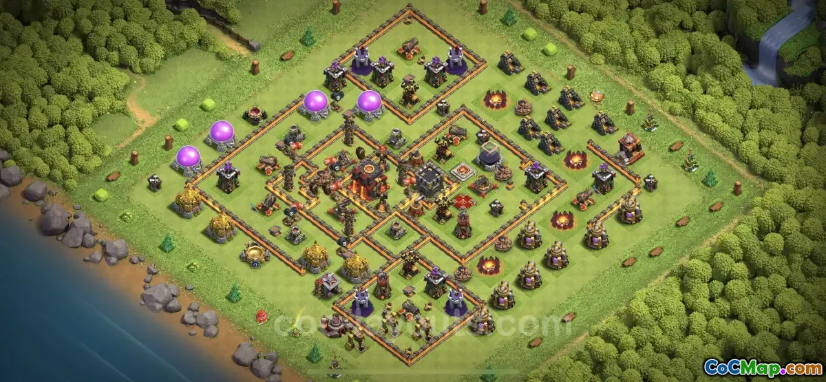 Discover the best Town Hall 10 base for Clash of Clans! Strong anti 3-star layout, perfect for fending off P.E.K.K.A and Golem attacks. Copy now!