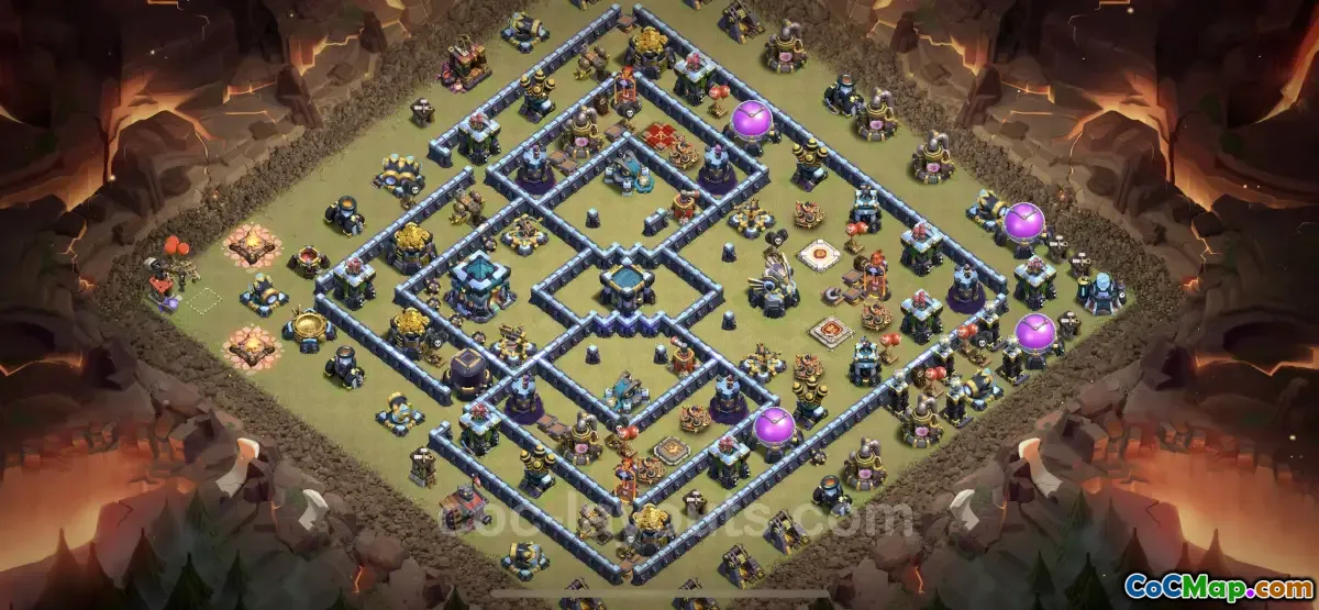 The best anti three stars war bases at TH13 feature layouts that employ a mix of defensive structures, including Inferno Towers, Eagle Artilleries, and Scattershots, thoughtfully placed to cover each other and create overlapping areas of defense. These bases often use centralized Town Halls, making it difficult for attackers to reach them without exposing themselves to multiple defensive threats. Additionally, some designs focus on funneling enemy troops away from critical structures, thereby forcing them into traps and allowing for effective countering by defensive troops.