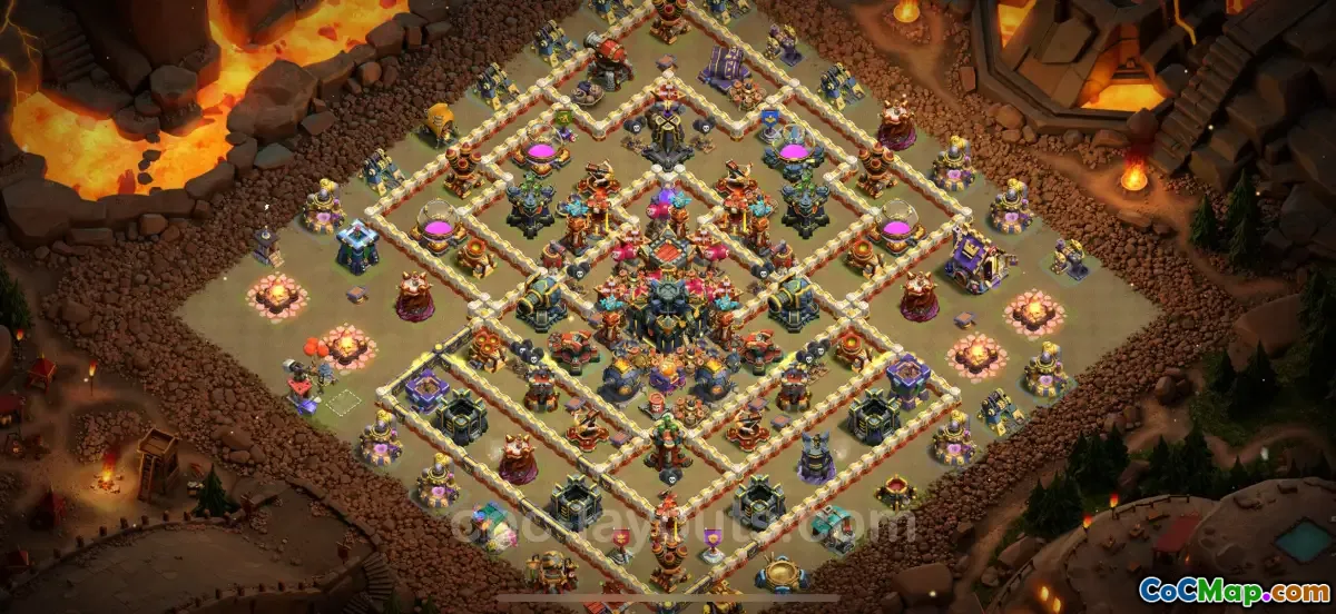 This top-rated anti 3 stars war base for TH17 offers players a reliable defense against the most common attack strategies used in CWL. It incorporates various defensive buildings, traps, and walls to create a challenging environment for attackers. By analyzing the latest trends in attack patterns and strategies from successful players, the base has been optimized to withstand high-level offensive tactics and protect its core assets from being overrun.