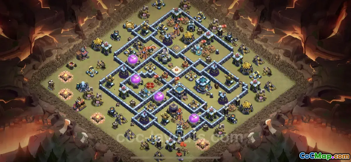 The best war base for Town Hall 13 in Clash of Clans (CoC) is designed specifically to be a robust and effective defense against all types of attacks. These bases incorporate strategic layouts that minimize vulnerabilities to ground and air assaults, making them ideal for Clan War Leagues (CWL). With strong defensive structures and effective placement, this kind of base is tailored to counter various attack strategies that enemies might employ.