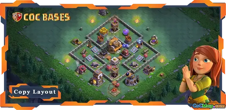 În imediata apropiere a halei constructorului, au fost poziționate diverse structuri defensive pentru a crea o rețea robustă de apărare. Acestea includ un mortar multiplu, bombe aeriene și un turn pentru arcași, toate acestea joacă un rol crucial în protejarea bazei. Mortarul multiplu este un atu important, capabil să livreze atacuri puternice trupelor inamice, în timp ce bombele aeriene se concentrează pe contracararea amenințărilor aeriene. În plus, prezența capcanelor cu arc și a minelor îmbunătățește poziția defensivă, făcându-i dificil pentru invadatori să spargă pereții bazei.