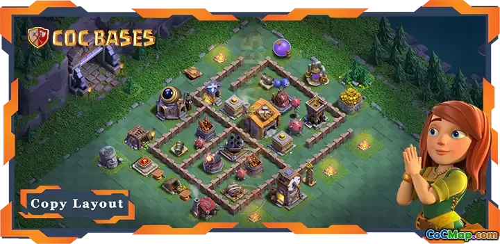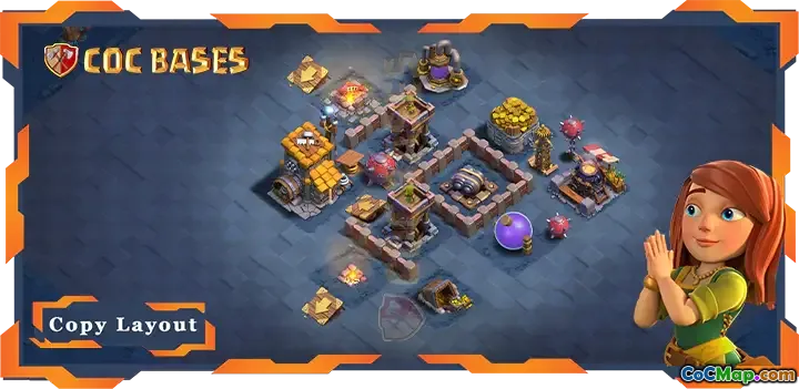 În rezumat, designul bazei bh06 este deliberat și funcțional, oferind o configurație bine proporționată, care include apărări critice din jurul halei constructorului și o a doua secțiune organizată care permite îmbunătățiri strategice suplimentare. Acest aspect oferă o bază solidă pentru jucătorii care doresc să-și optimizeze apărarea și resursele în mod eficient în joc.