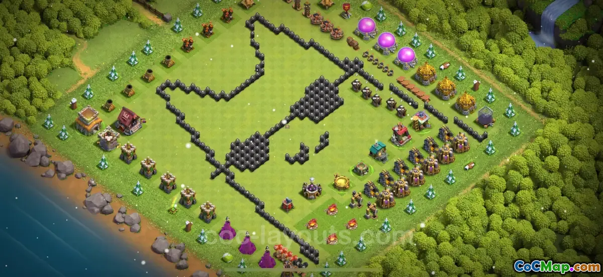 One of the standout features of this troll base is its ability to lure attackers into traps. By cleverly placing defenses and structures, the base entices enemies to target certain areas, leading them into cleverly positioned bomb areas or traps that cause significant damage while also creating a sense of frustration and surprise for the attacker. This strategy is particularly effective at Town Hall 8, where players often expect straightforward defenses.