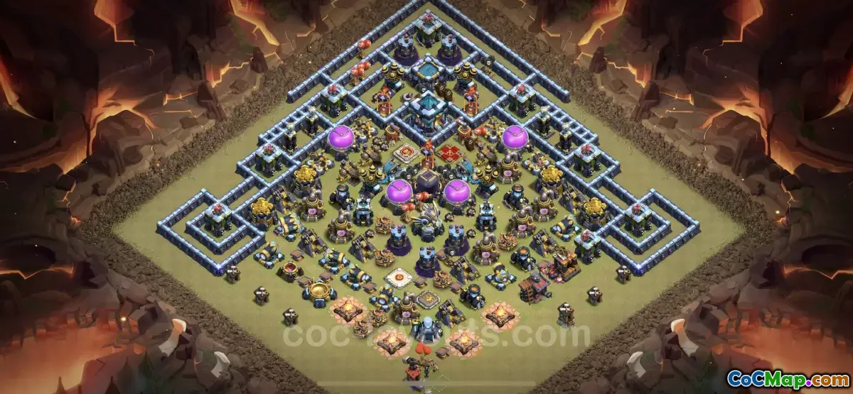 The Top War TH13 Base emphasizes strong defensive capabilities, utilizing strategic placements of defenses to thwart enemy troops. This type of base is specifically crafted to withstand all kinds of attacks, proving to be a reliable choice for players participating in competitive war scenarios. Important features of the base include centralizing the Town Hall and placing key defenses such as Eagle Artillery and Inferno Towers in protected locations, which diminishes the effectiveness of enemy tactics.