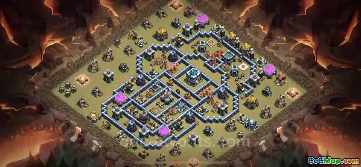 The appeal of this Town Hall 13 war base lies in its ability to combine aesthetics with functionality. Players can expect a well-balanced layout that not only looks impressive but also keeps their Town Hall and key defenses well-protected. With this base, players can confidently participate in Clan Wars knowing they have a reliable structure in place to counter diverse strategies from their opponents. Overall, the Best Max Levels War Base is an essential asset for any serious Clash of Clans player at Town Hall 13 looking to excel in competitive environments.
