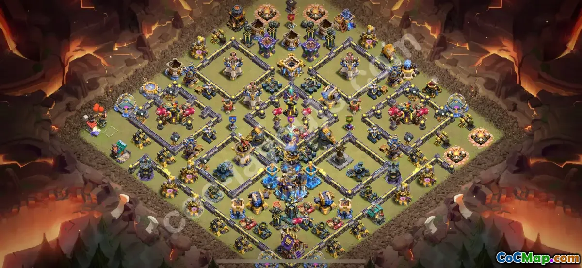 Discover the best Town Hall 18 war base layout for 2025, engineered for maximum protection against all attack strategies. This anti-everything design is optimized for Clan War League (CWL) battles, providing excellent defenses against air and ground assaults. The layout features well-placed traps, effective Clan Castle positioning, and strategic wall placement to slow down enemy troops and prevent quick collapses.