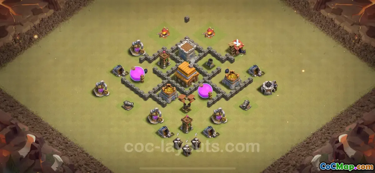 Articolul discută un aspect strategic pentru un Town Hall 4 în Clash of Clans, special conceput pentru apărare în Clan War Leagues (CWL). Se subliniază importanța de a avea o bază bine structurată pentru a rezista atacurilor adversarilor care pot viza Primăria. Designul de bază este prezentat ca fiind eficient împotriva unei varietăți de strategii ofensive, ceea ce îl face o alegere robustă pentru jucătorii care doresc să-și îmbunătățească capacitățile defensive.
