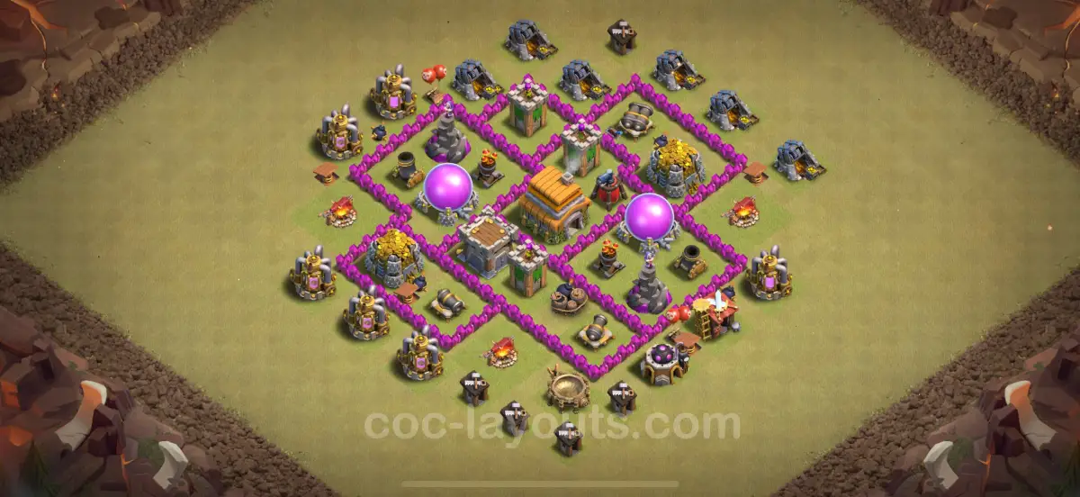 În Clash of Clans, a avea o bază puternică și bine structurată este crucială pentru apărarea împotriva atacurilor, în special la nivelul 6 al primăriei. Descrierea oferită evidențiază un design specific al bazei cunoscut sub numele de „Top War TH6 Base”, care este construit pentru a oferi o protecție completă împotriva diferitelor tipuri de atacuri. Această bază este concepută pentru a fi eficientă în Ligile de Război de Clan (CWL) și este clasificată ca bază hibridă, ceea ce înseamnă că este menită să protejeze resursele, fiind în același timp suficient de robustă pentru a rezista atacurilor de război.