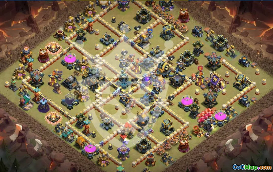 Discover expertly crafted Clash of Clans Town Hall 17 base layouts designed to enhance your defense strategy. These layouts include home village setups, trophy bases, and war bases, all optimized for protection against attackers and maximizing loot. By copying these base structures, players can ensure their defenses are balanced, well-placed, and resilient against various attack strategies.
