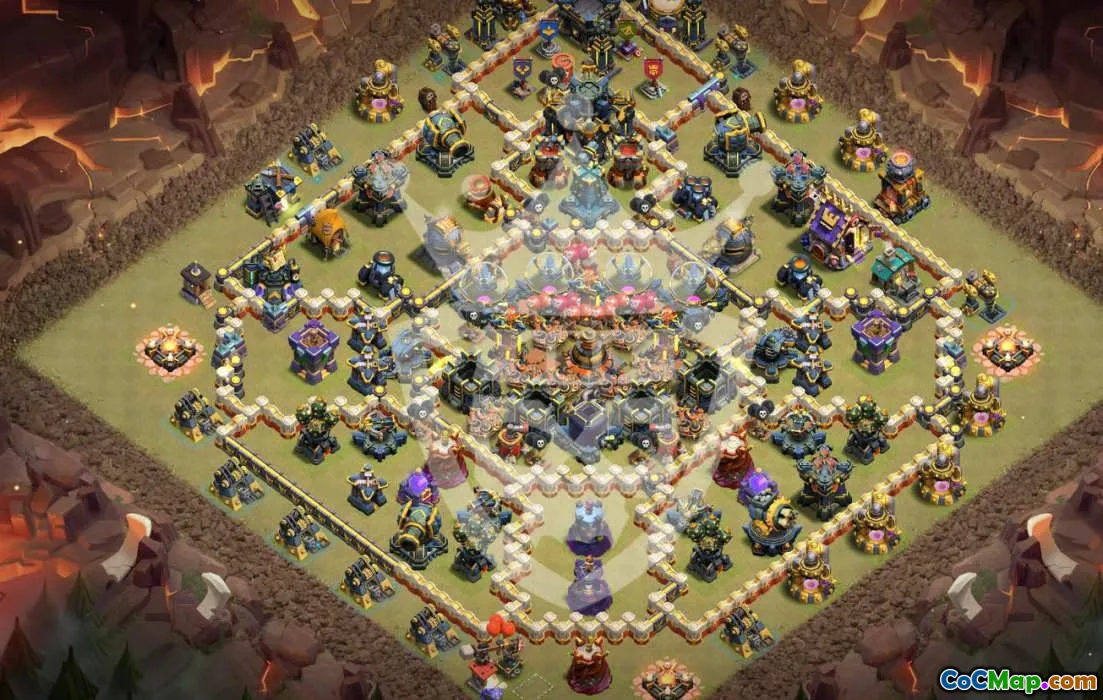 Discover an expertly designed Town Hall 17 base layout ideal for defending against attacks and boosting your trophy count. This layout offers a strong central core with well-placed defensive structures, traps, and walls to maximize protection for your resources and resources. It is suitable for both home village defense and competitive war strategies, ensuring your base remains resilient against various attack styles.