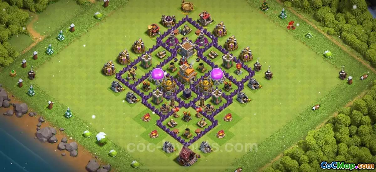Designul de bază al Primăriei Nivelul 7 (TH7) din Clash of Clans se concentrează pe optimizarea atât a apărării, cât și a protecției resurselor. Jucătorii caută adesea un aspect care să împiedice efectiv inamicii să obțină victorii de trei stele și, în același timp, să-și protejeze resursele în timpul sesiunilor de agricultură. Amplasarea strategică a clădirilor, capcanelor și unităților defensive este crucială pentru a stabili o bază robustă, capabilă să reziste diferitelor strategii de atac.