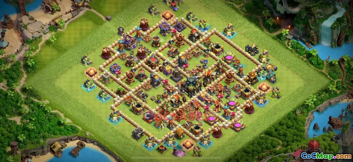Baza de război Town Hall 17 este concepută special pentru jucătorii care se angajează în bătălii în cadrul popularului joc mobil Clash of Clans. Acest aspect de bază este conceput strategic pentru a proteja Primăria, atenuând totodată daunele cauzate de atacatori. A avea o bază de război eficientă este esențială, mai ales în timpul Ligilor de Război de Clan (CWL) sau în timpul competiției în Legend League, unde abilitățile și strategiile de apărare ale structurilor de bază pot influența semnificativ rezultatul meciurilor.