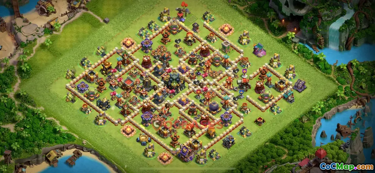 Baza de război Town Hall 17 din Clash of Clans este concepută pentru a oferi o apărare puternică în timpul luptelor, în special în Războiul Clanurilor și Liga Campionilor. Pe măsură ce jucătorii caută să-și întărească structurile și să-și protejeze resursele, stabilirea unei baze de război eficace este crucială pentru angajamente de succes cu clanurile inamice. Designul acestei baze de război ține cont de provocările unice prezentate de jucătorii și trupele de nivel superior, mai ales când se atinge apogeul jocului la Primăria 17.