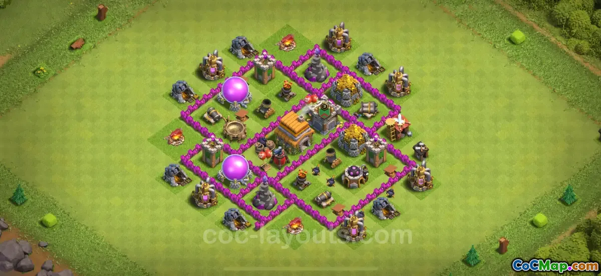 Un alt element pe care jucătorii îl pot integra în aspectul lor de bază TH6 este tactica anti-3 stele. Aceasta implică utilizarea strategică a zidurilor și capcanelor pentru a perturba fluxul de atac. De exemplu, crearea de compartimente care încetinesc trupele inamice este o mișcare tipică. Această practică asigură faptul că atacatorii pot petrece mai mult timp de-a face cu segmentele de perete și capcane, permițând apărării să neutralizeze amenințările mai eficient și să protejeze resursele valoroase.