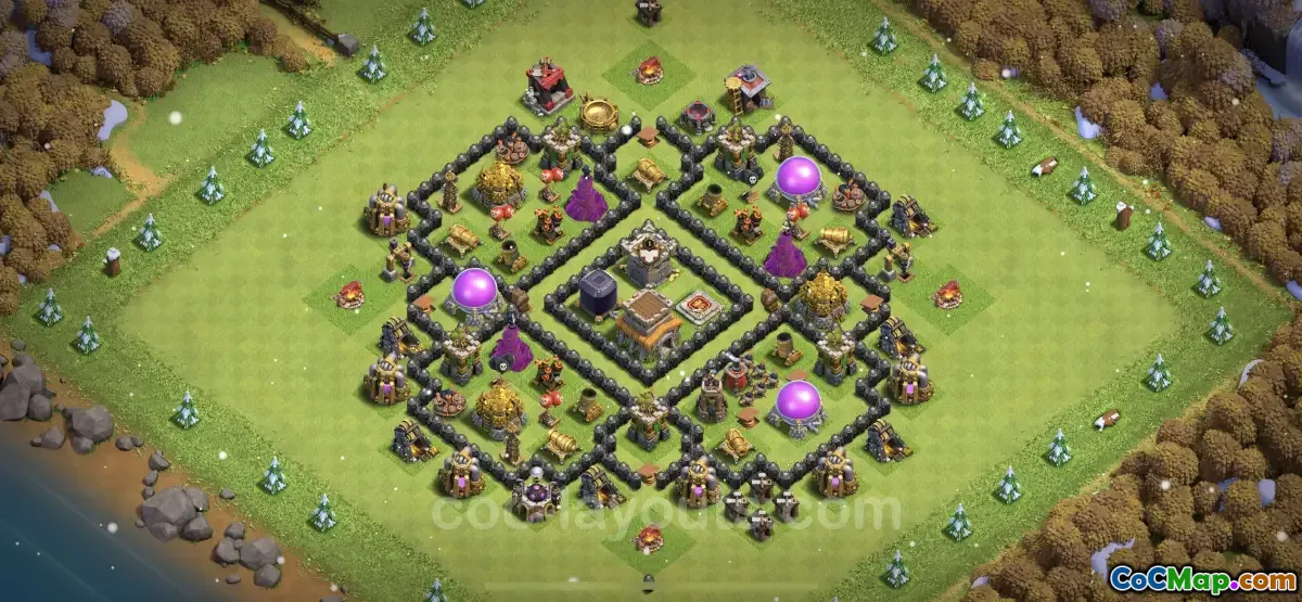 The base design incorporates elements that safeguard against various attack strategies, making it versatile and resilient. Players utilizing this base can expect better protection for their resources and trophies, as the strategic placement of defensive buildings makes it hard for opponents to reach critical structures. This contributes to an overall sense of security in maintaining one's trophy count while participating in competitive play.