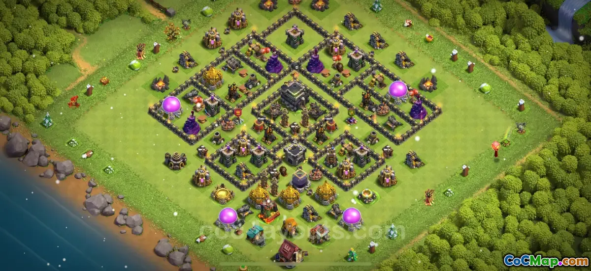The Best Base TH9 with Link Anti Everything for 2025 is designed specifically for players of Clash of Clans at Town Hall level 9. This base has been meticulously crafted to offer a robust defense against various attack strategies. Players looking to defend their resources while maximizing the protection of their Town Hall will find this base particularly effective. This configuration allows for less vulnerability to common attacking methods used by opponents.