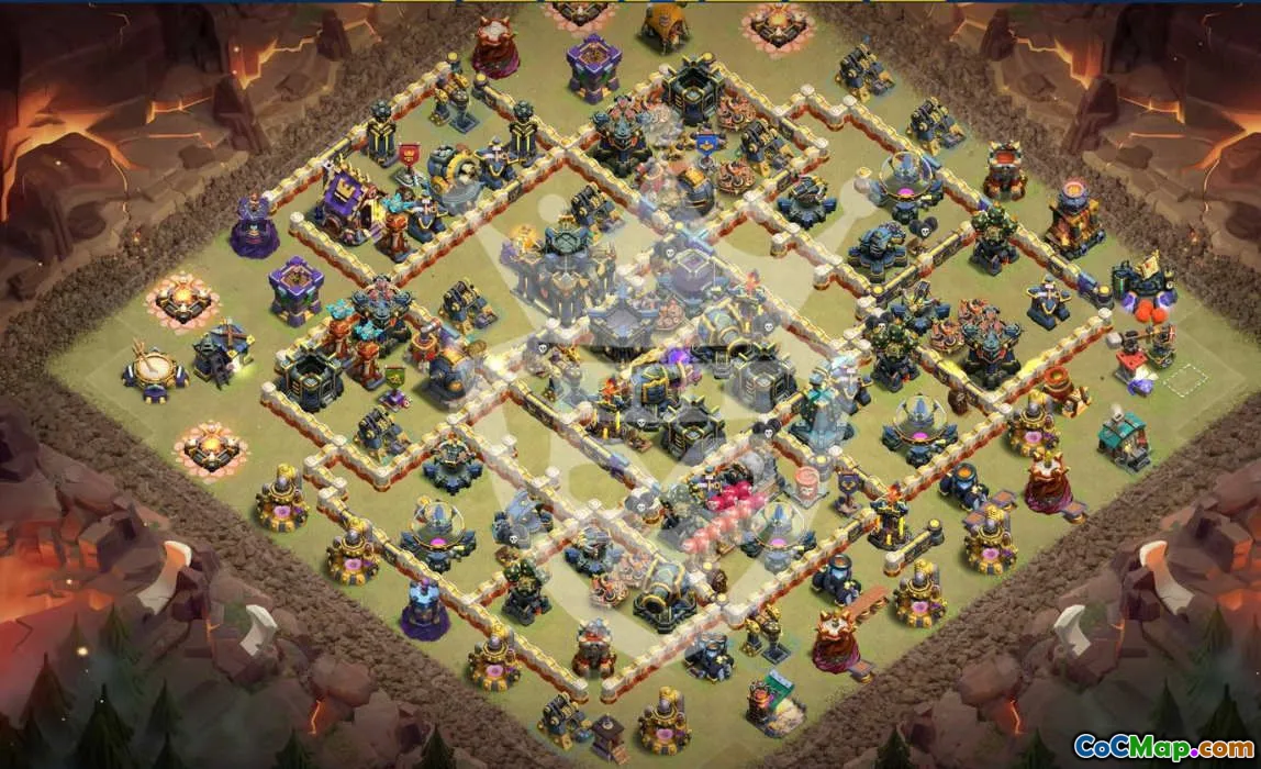 Discover optimized Clash of Clans Town Hall 17 base layouts for home, trophy, war, and map. Copy and customize your perfect defense strategy today.