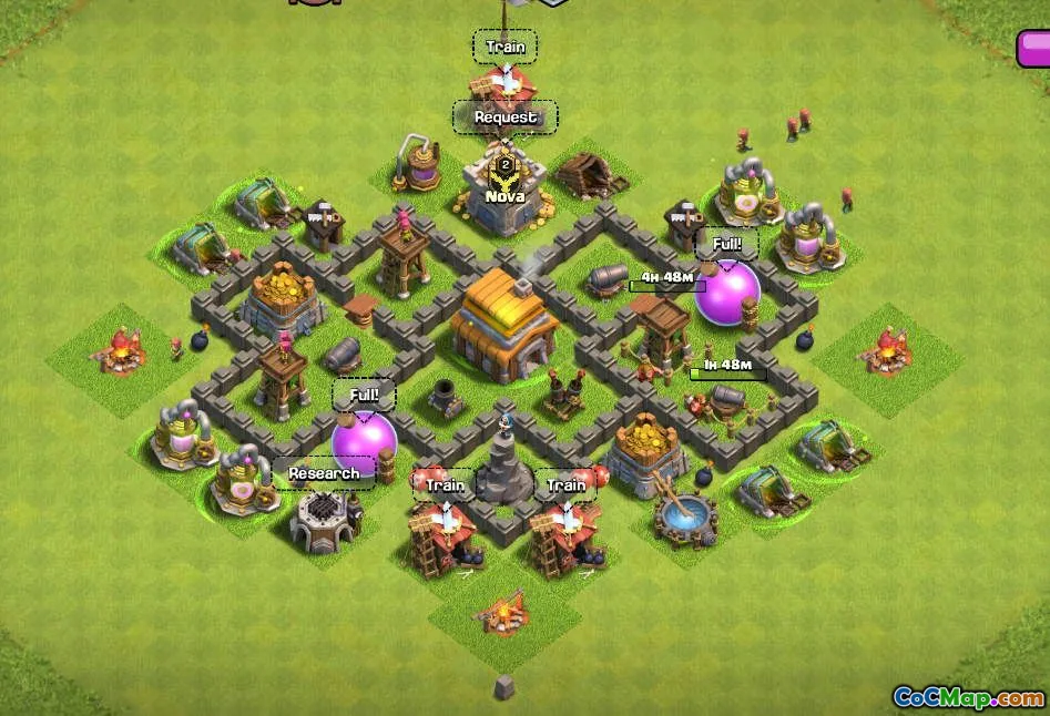 The Clash of Clans game offers a variety of base layouts for players to enhance their gameplay experience, particularly for Town Hall 5. At this level, players can strategically design their home village to optimize defense and resource management. Home village layouts typically focus on protecting key structures such as storages, the Town Hall itself, and defensive buildings, ensuring that players can not only defend against enemy attacks but also effectively gather resources during raids.