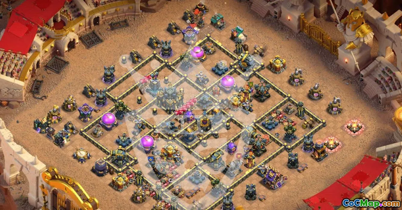 Looking for a highly effective Town Hall 17 base layout in Clash of Clans? This copyable map is designed to provide strong defense, protect your resources, and enhance your war strategies. The layout combines well-organized defenses, strategic placement of traps, and well-protected town hall positioning, making it suitable for both trophy pushing and clan wars.
