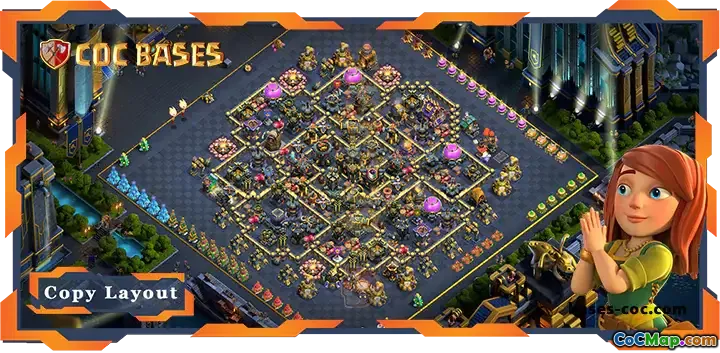 This well-crafted Hybrid Base for Town Hall 17 combines strong defensive structures with effective layout placement to prevent space exploitation and minimize damage from both air and ground attacks. Its strategic placement of traps, walls, and Clan Castle ensures attackers face a tough challenge from the start.