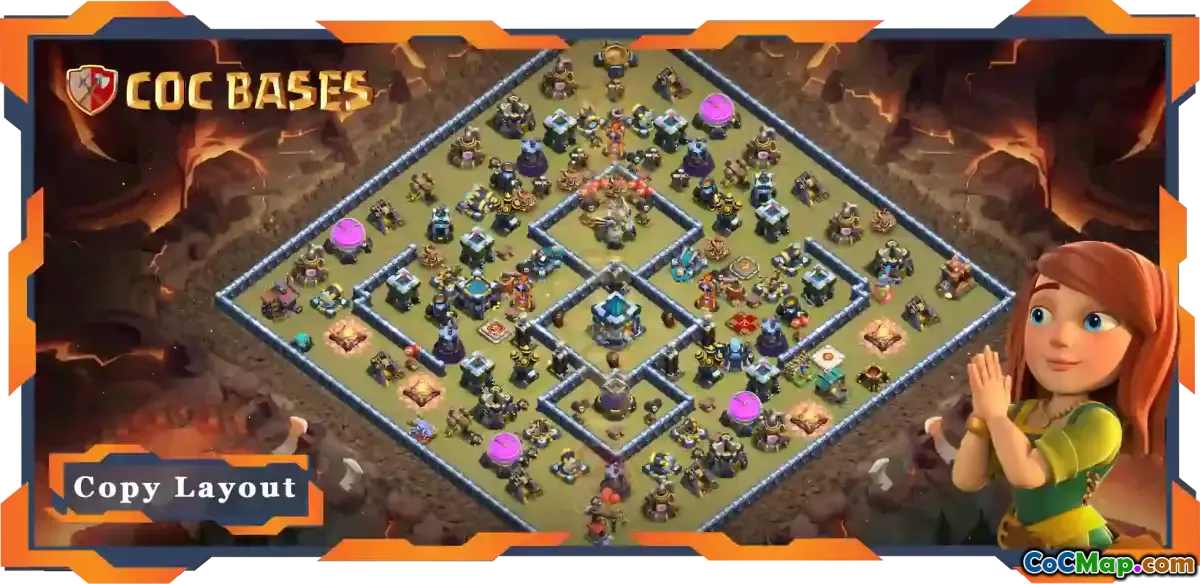 The "Top Base TH13" base layout for Clash of Clans is designed specifically for Town Hall 13 players who are looking to enhance their defensive strategies. This layout is particularly effective in competitive scenarios, such as Clan Wars and Clan War Leagues (CWL), where the goal is to protect against two-star attacks. The design strategically places defenses, ensuring that attackers must carefully plan their strategies to achieve a successful raid against it.