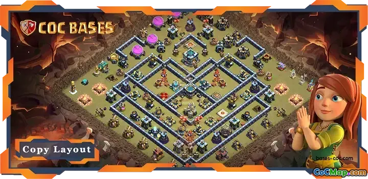 Discover the ultimate TH13 war base layout designed for Clash of Clans. Featuring anti-air strategies, Electro Dragon defense, and anti 3-star tactics!