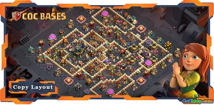 „Top Base TH17 with Link” este un aspect strategic conceput pentru jucătorii din Clash of Clans care doresc să-și asigure un avantaj în Clan War Leagues (CWL). Acest aspect este deosebit de eficient pentru a împiedica adversarii să obțină cu ușurință două stele în timpul atacurilor. Baza încorporează structuri defensive cheie plasate strategic pentru a maximiza protecția minimizând în același timp vulnerabilitatea la diferite strategii de atac.