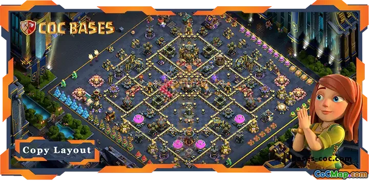 Strategically placed traps, hidden defenses, and well-positioned Clan Castle troops enhance the base's resilience. This layout is ideal for players looking to defend intensely while maintaining a balanced attack strategy, making it one of the best choices for TH17 in Clash of Clans. For the full layout with link, ensure to get the latest updated map to replicate this effective defense setup.