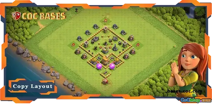 Strategically positioned air defenses and wizard towers enhance aerial defense, while trap placements surprise attackers and slow down their progress. This layout is designed to maximize defense durability, encouraging attackers to spend more time and resources to breach it. For optimal protection, use the provided link to view the full layout and implement it for a more secure and resilient TH5 base in Clash of Clans.