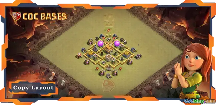 Acest aspect al bazei TH5 este proiectat strategic pentru apărarea împotriva atacurilor aeriene, asigurând o protecție eficientă împotriva inamicilor care vizează victorii de 2 stele. În centrul bazei se află primăria, care este încorporată în siguranță în secțiunea centrală a aspectului. Această poziție nu numai că oferă un bastion pentru primărie, ci și îngreunează accesul atacatorilor, sporind astfel puterea defensivă a acesteia.