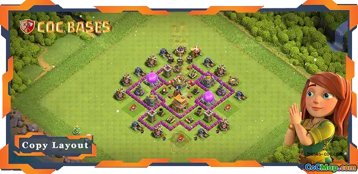 Discover the ultimate TH6 farming base with hybrid and anti-air layouts! Secure your resources with a solid design featuring central defenses.
