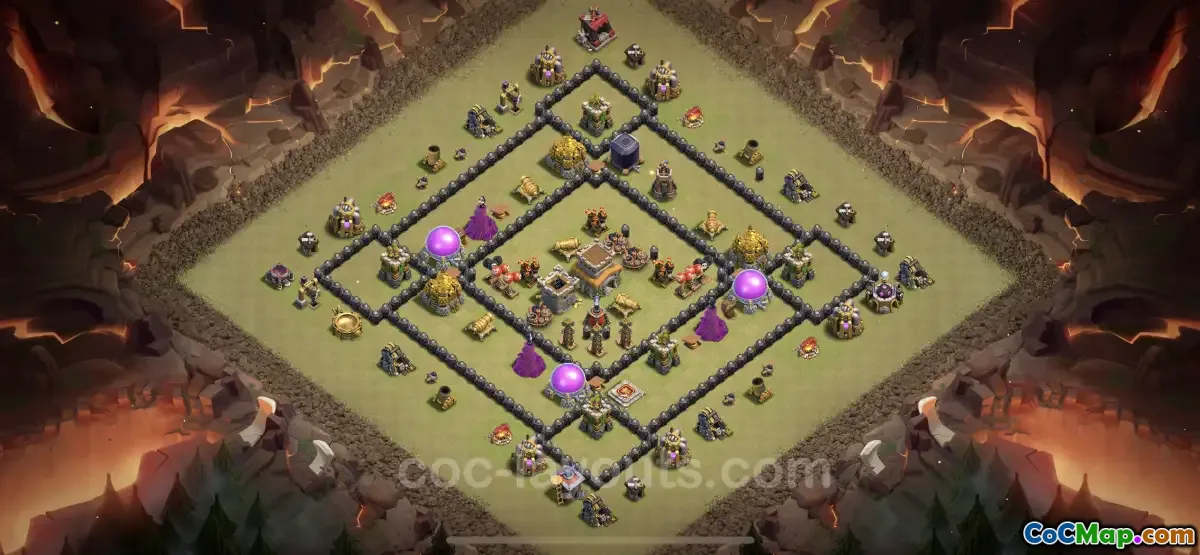 The Best Max Levels War Base TH8 with Link offers a strategic design suitable for players at Town Hall Level 8 in Clash of Clans. This base layout is specifically crafted to withstand various attack strategies used in Clan War Leagues. Its hybrid structure combines elements of both war and farming bases, allowing players to effectively protect their resources while also securing victory in clan wars. The layout emphasizes defensive buildings and traps positioned to thwart attackers, ensuring the base can hold off powerful enemy troops.
