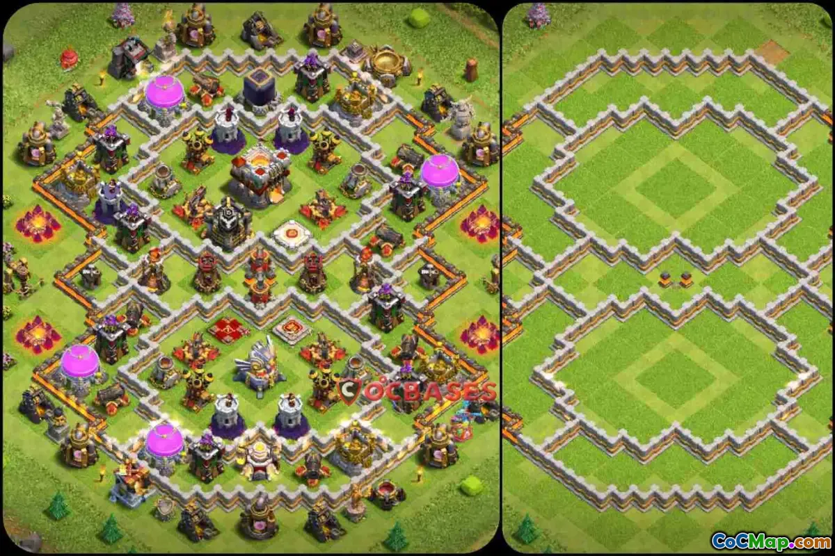 A Town Hall 11 hybrid base in Clash of Clans is designed to blend the strengths of both farming and war bases. The goal of a hybrid layout is to protect resources while also minimizing the risk of losing trophies in multiplayer battles. In these bases, the Town Hall and the most valuable resources, such as Dark Elixir and Elixir, are strategically placed to make it difficult for opponents to access them. This ensures that players can maintain a strong defense while still collecting enough resources to upgrade their buildings and troops effectively.