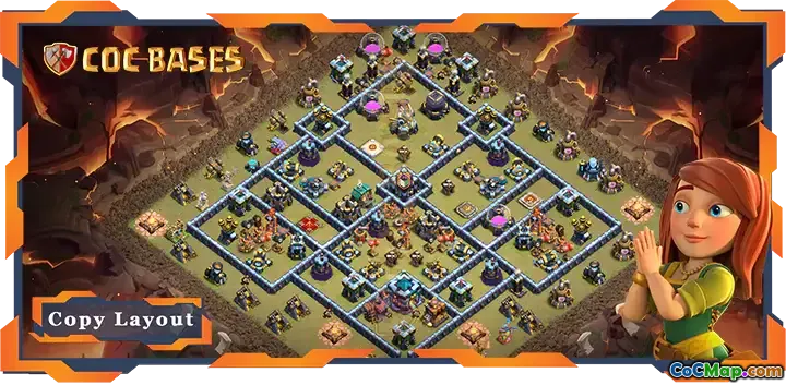 În concluzie, acest aspect al bazei TH13 exemplifica o planificare atentă și un design care vizează maximizarea capacităților defensive. Castelul său central al clanului, zidurile bine plasate și aranjamentul strategic de apărare îl fac o provocare formidabilă pentru atacatori. Accentul pus pe crearea unui aspect anti-tot asigură că jucătorii își pot apăra eficient resursele și trofeele, solidificându-și pozițiile în joc.