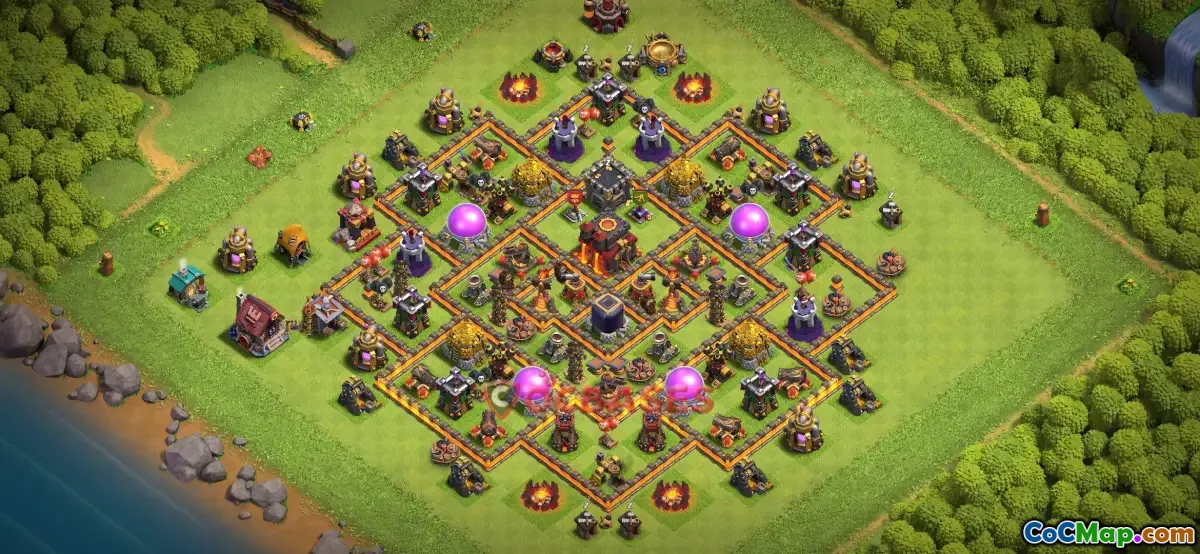 This Town Hall 10 farming base is designed specifically to help players efficiently gather resources in Clash of Clans. The layout focuses on protecting the resources and storages by placing them in well-defended areas, making it harder for attackers to steal valuable loot. The base setup includes strategic placement of walls, defenses, and traps to maximize protection against various attacking strategies, especially for players focusing on farming rather than attacking. Using this type of base helps players accumulate resources necessary for upgrading troops, defenses, and other vital structures.